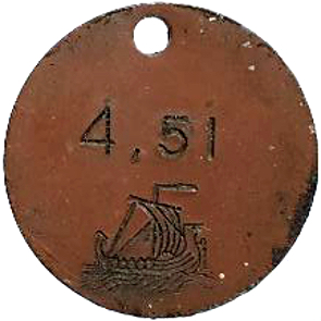 Brickorna nedan är märkta enligt följande: (Högervänt vikingaskepp) 5, 4,51, 3,57, 2,77, 2 50; (Vänstervänt vikingaskepp) 5, 4,52, 3,577, 2,77, V E 2,5 (?).