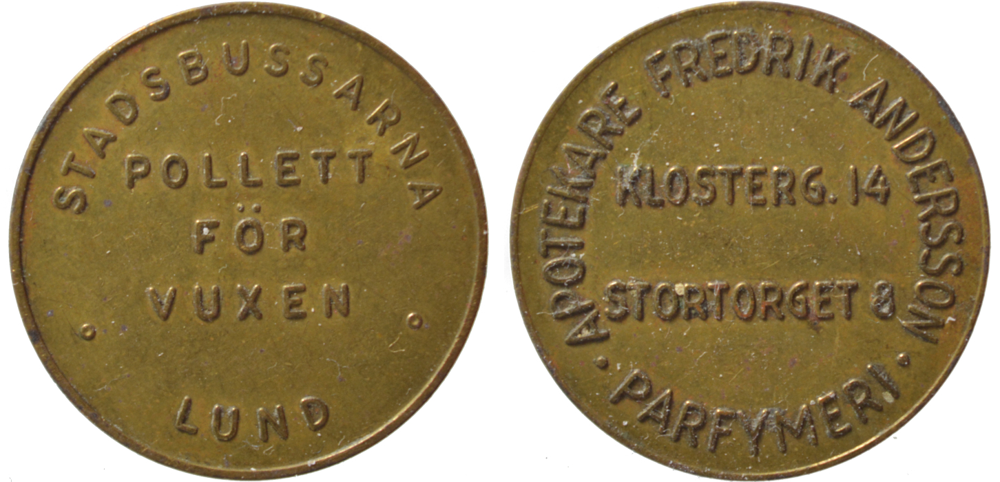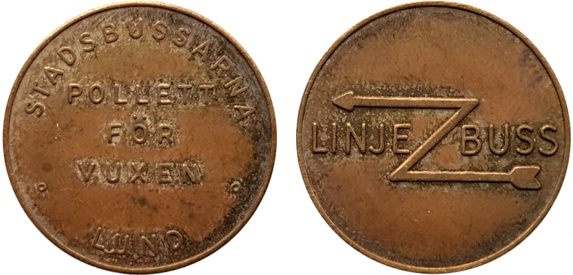 STADSBUSSARNA LUND POLLETT FÖR VUXEN 24 mm. Mässing. SkP 43.25.4b?