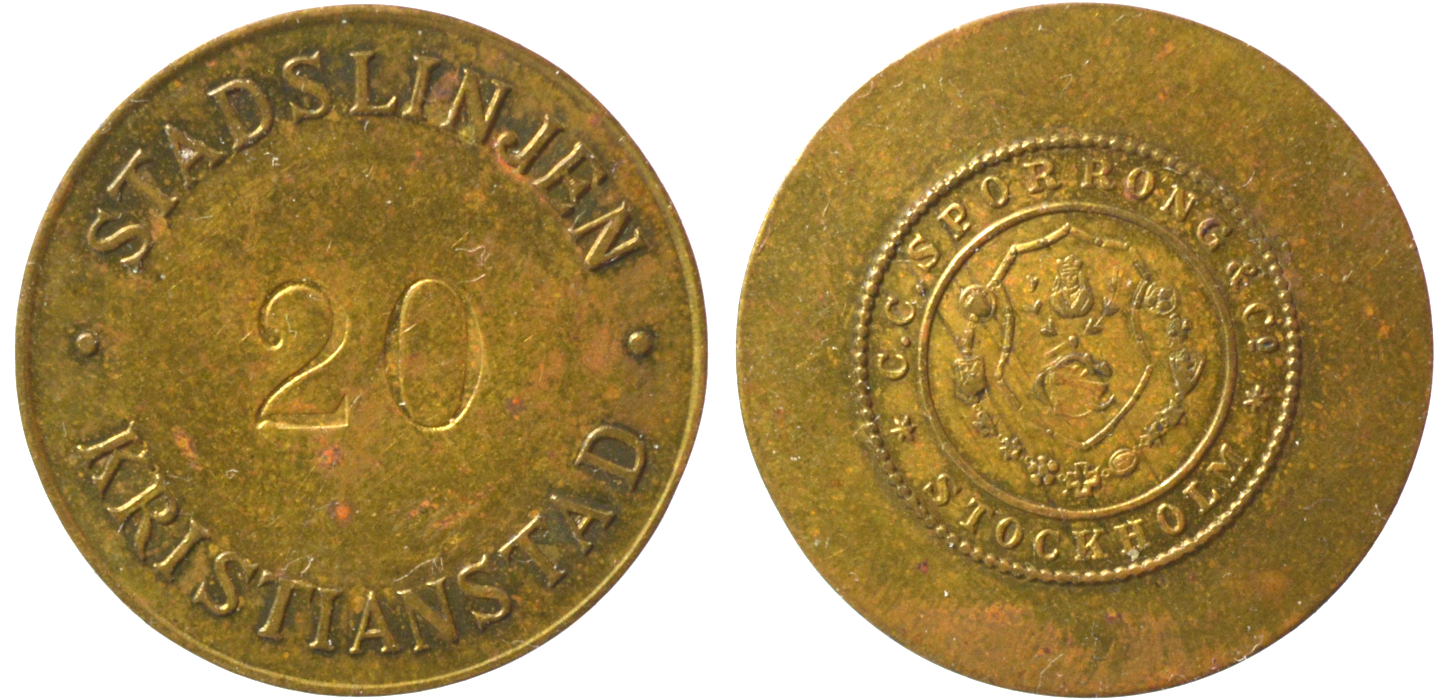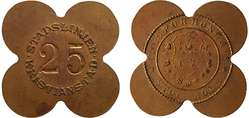 Stadslinjen Kristianstad 25 mm. Mässing. SkP 38.11.1 Smith Sweden 440BA.