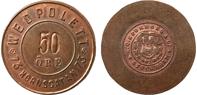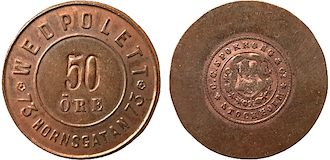 Hem för de elända 50 öre Copper. 27 mm. Stockholmspolletter SP 4B.7. 4.