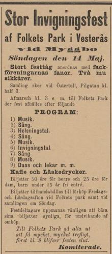 Västerås Folkets park i tidningen