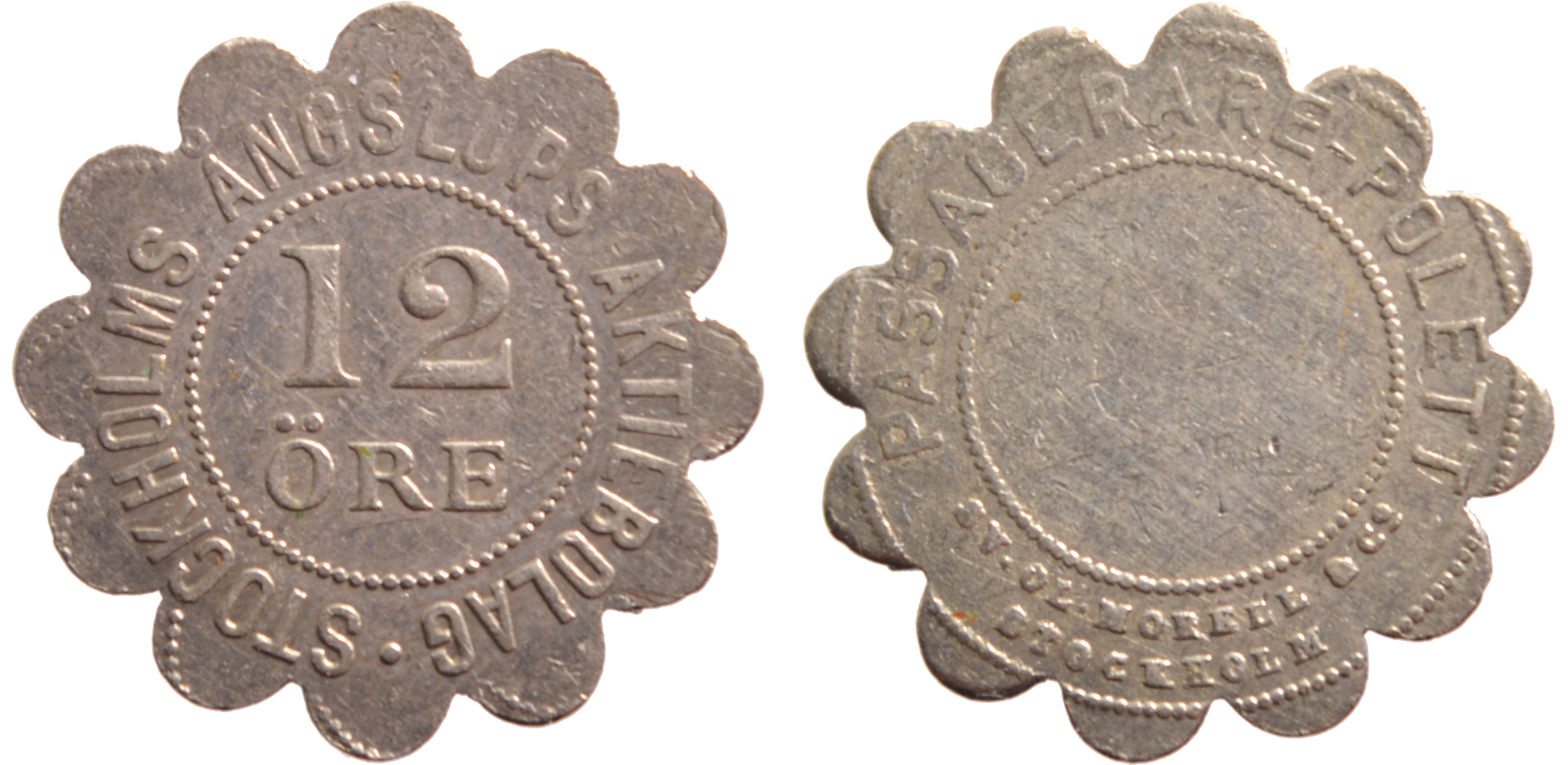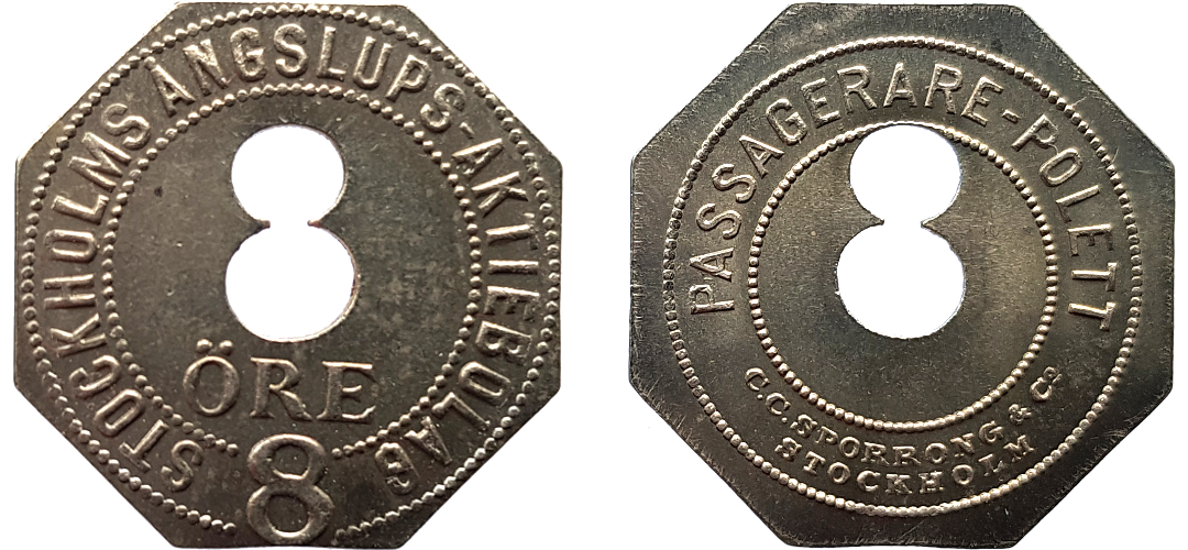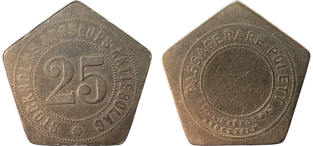 22 mm. Vitmetall. Inte i Stockholmspolletter.