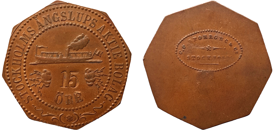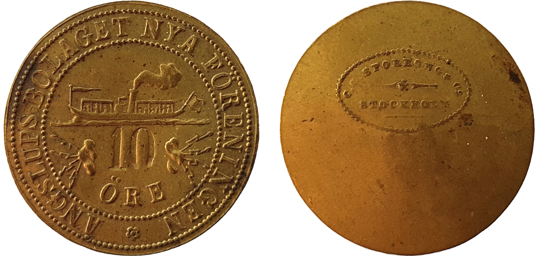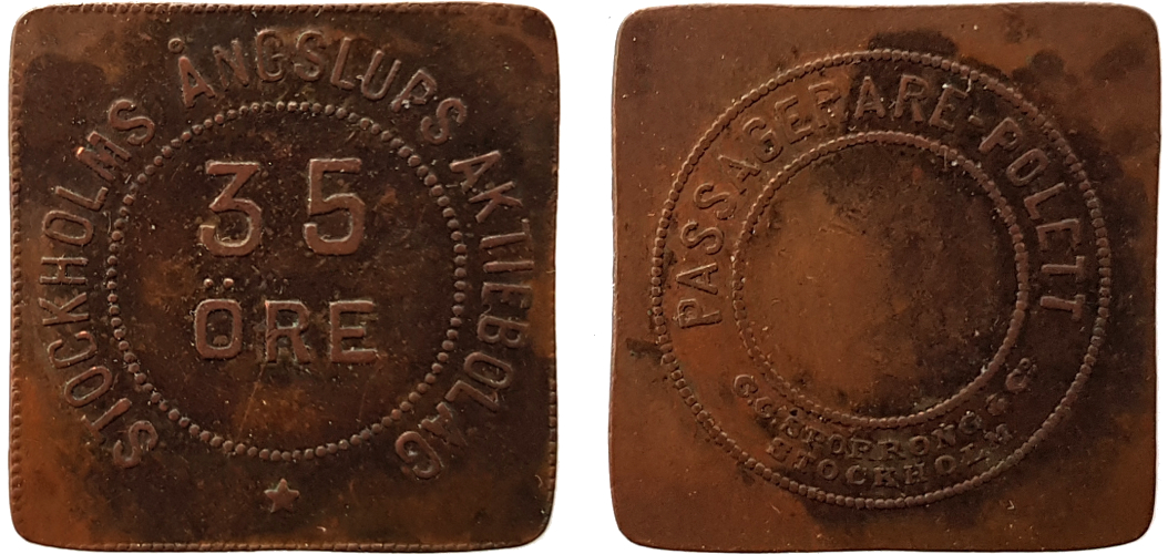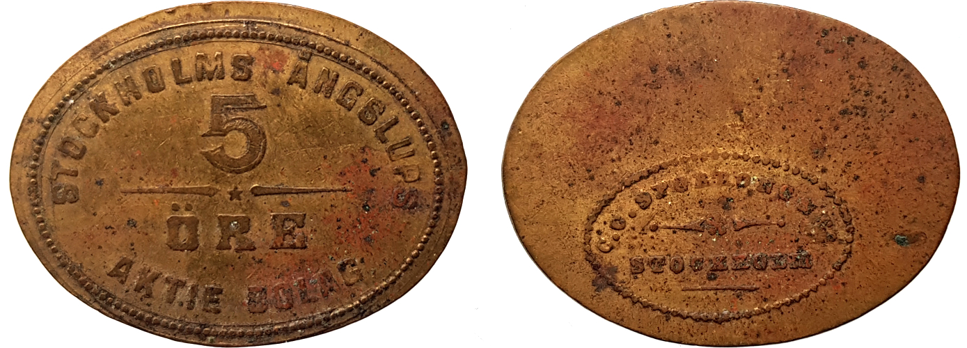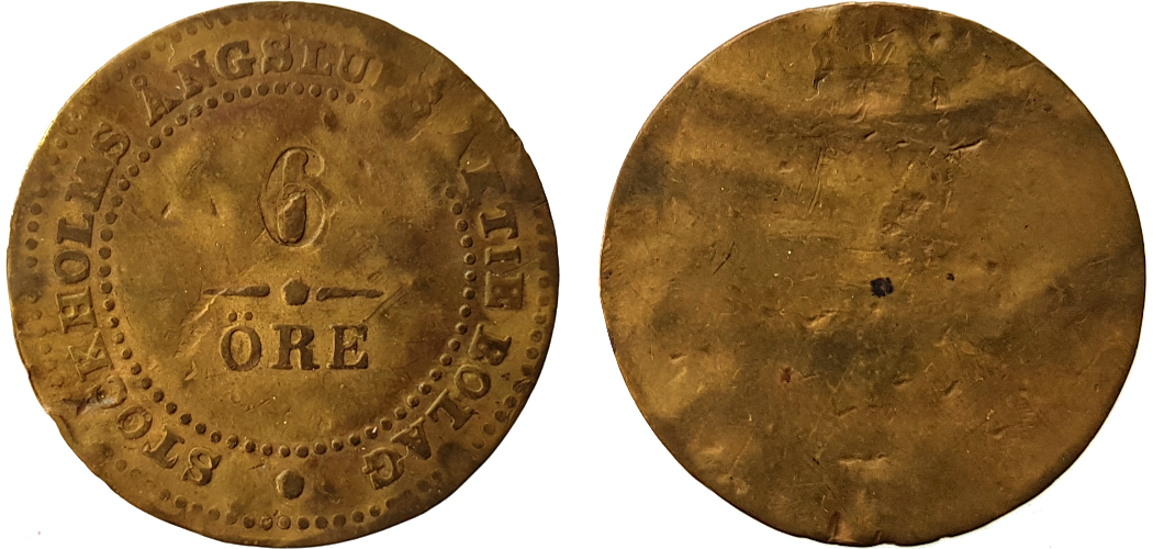 32×19 mm. Copper? Smith Sweden 820 NH. Not in Stockholmspolletter.