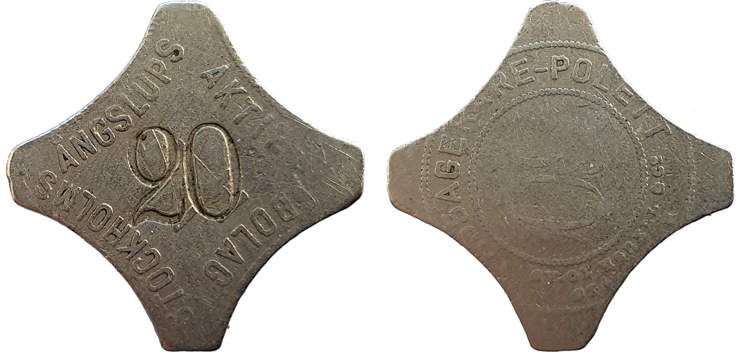 20 mm. Brass. Stockholmspolletter 5B.9.78.
