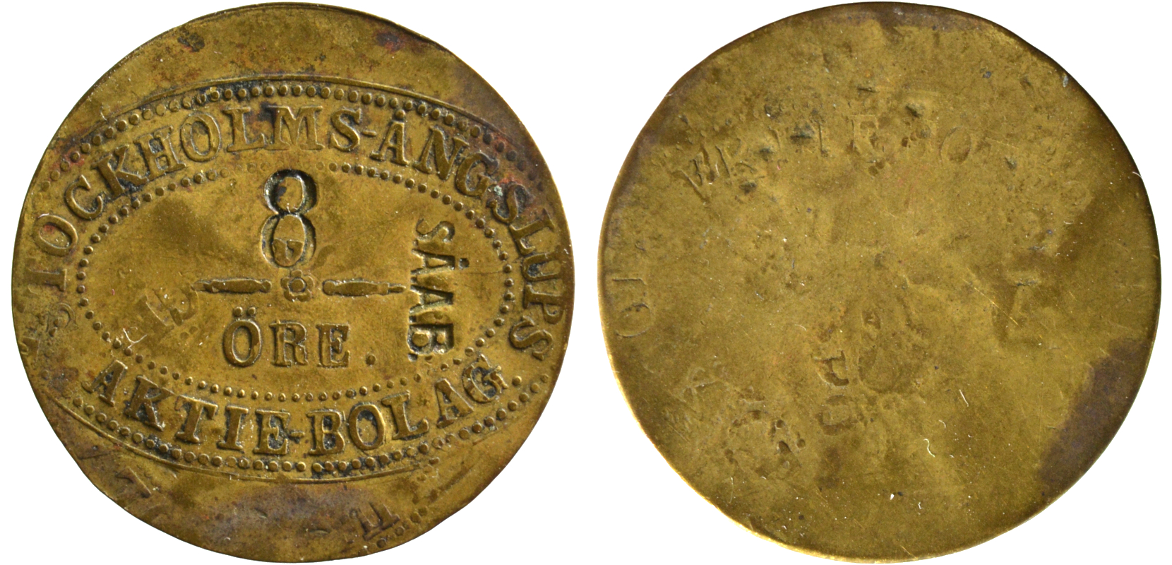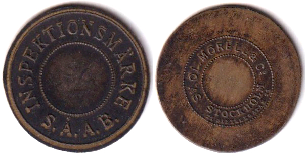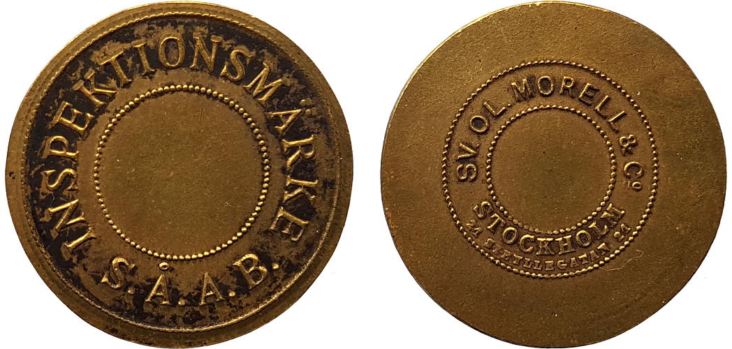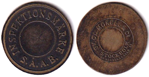 28 mm. Brass. Smith Sweden 820FR, Stockholmpolletter 5B.9.26.