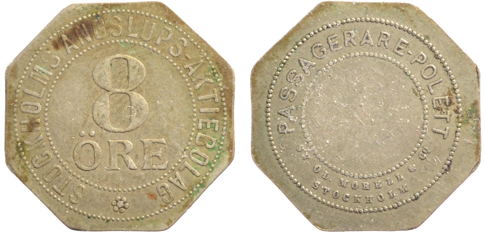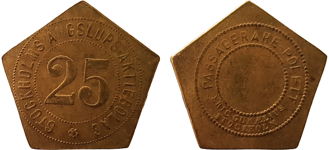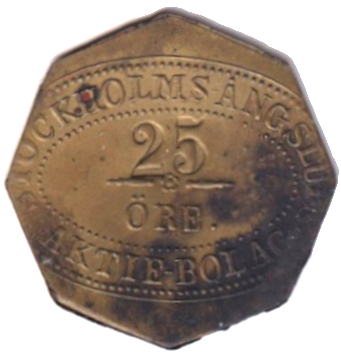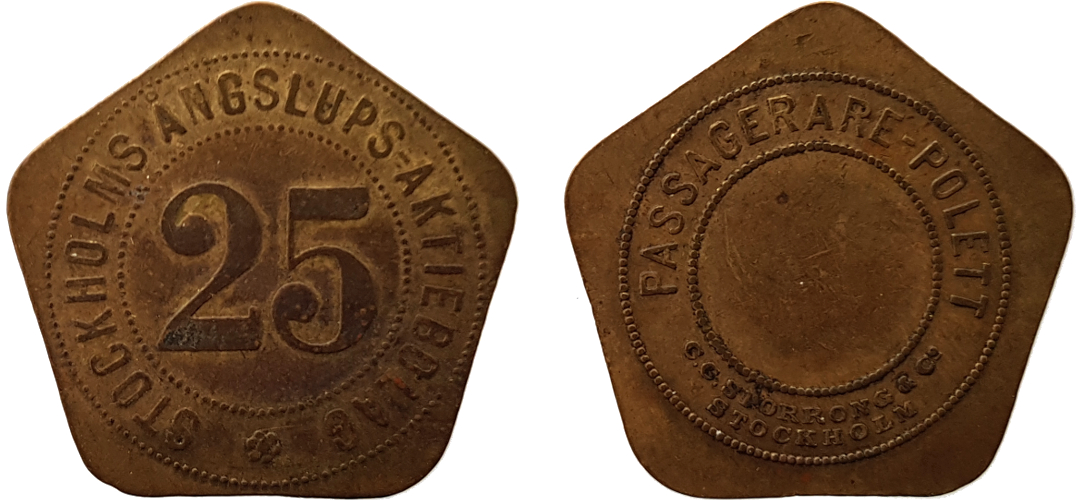 22 mm. Mässing. Inte i Stockholmspolletter.