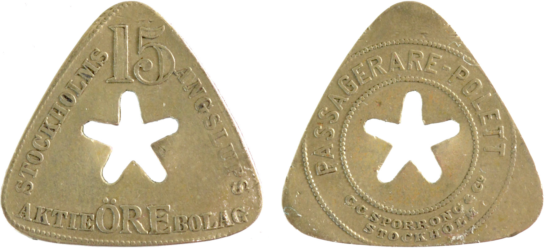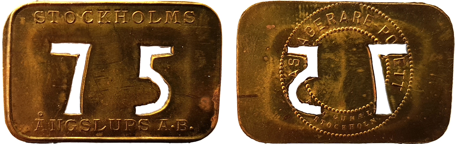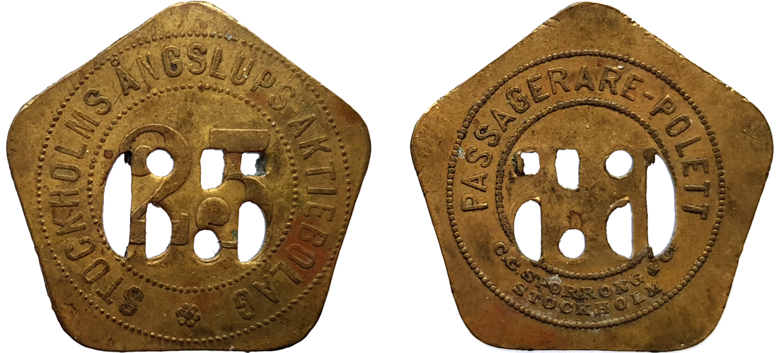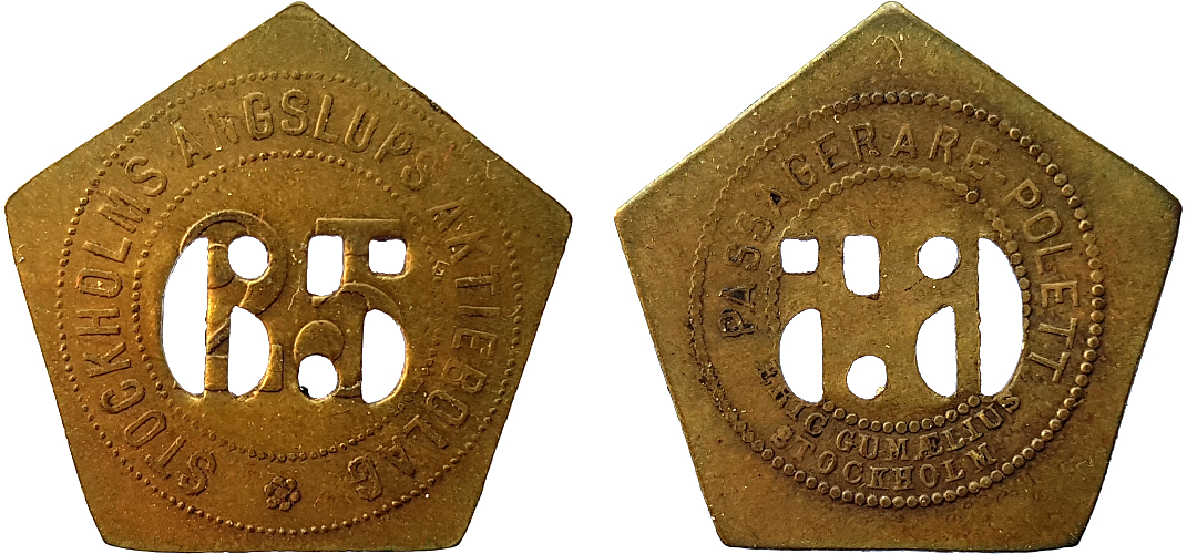21 mm. Brass. Stockholmspolletter 5B.9.85.