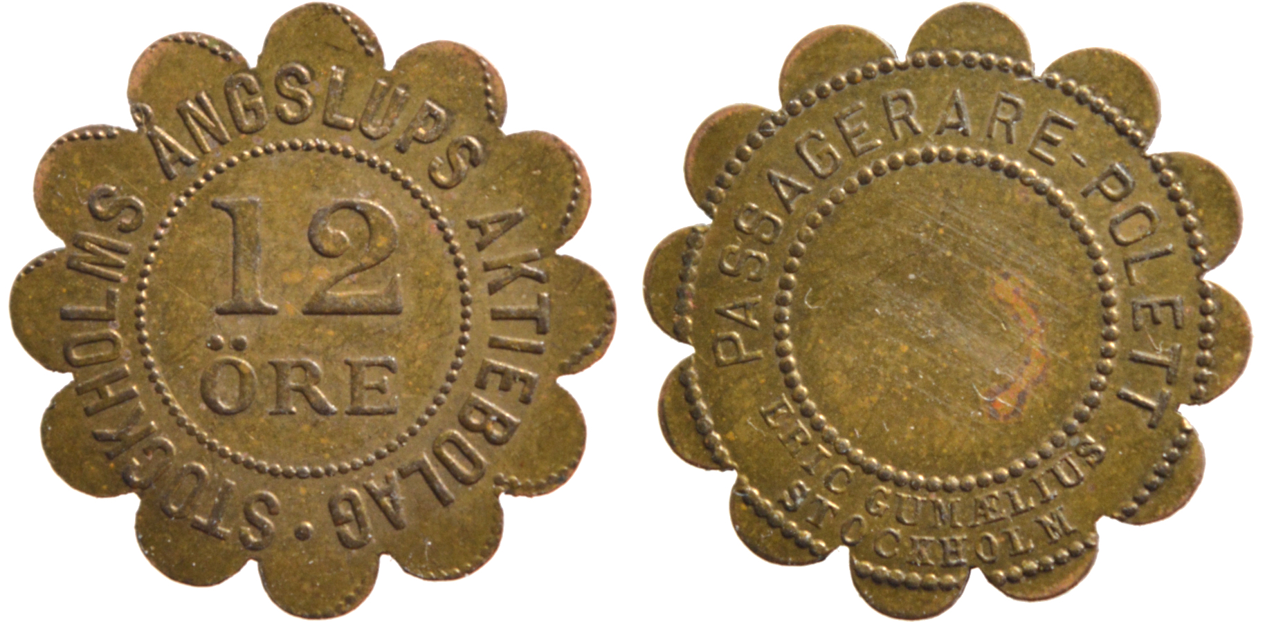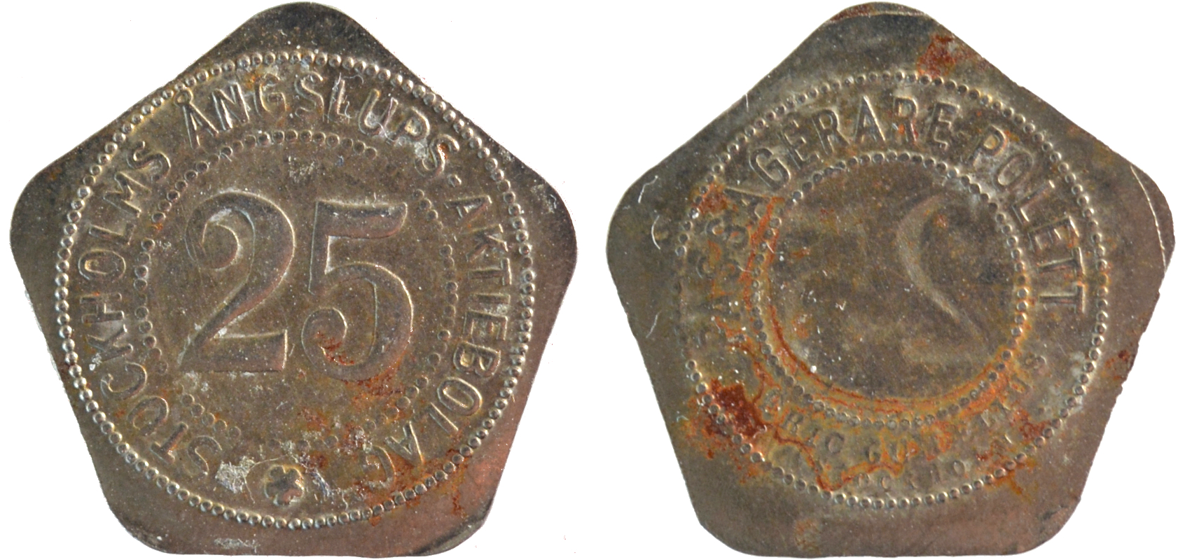 20 mm. Brass. Stockholmspolletter 5B.9.107.
