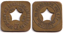 23×23 mm. Brass. Stockholmspolletter 5B.9.80.